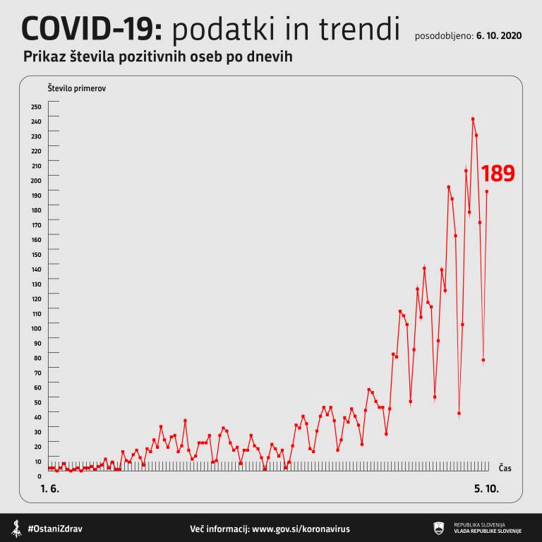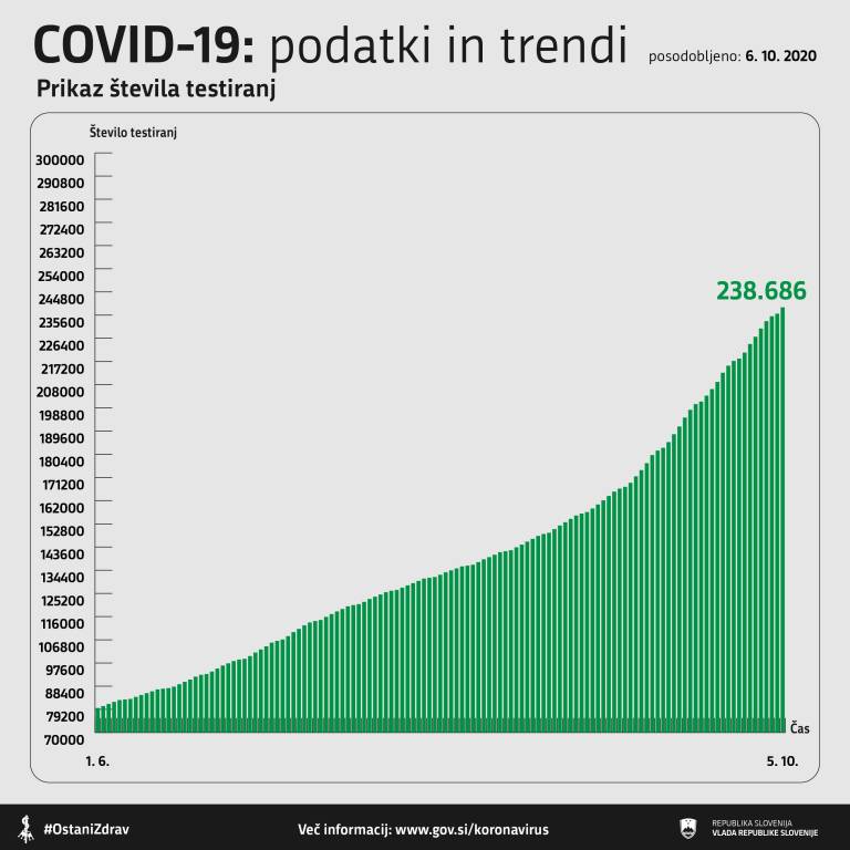 Z Vlade Republike Slovenije so sporočili sveže podatke o trendu obolelosti s koronavirusom v Sloveniji.
