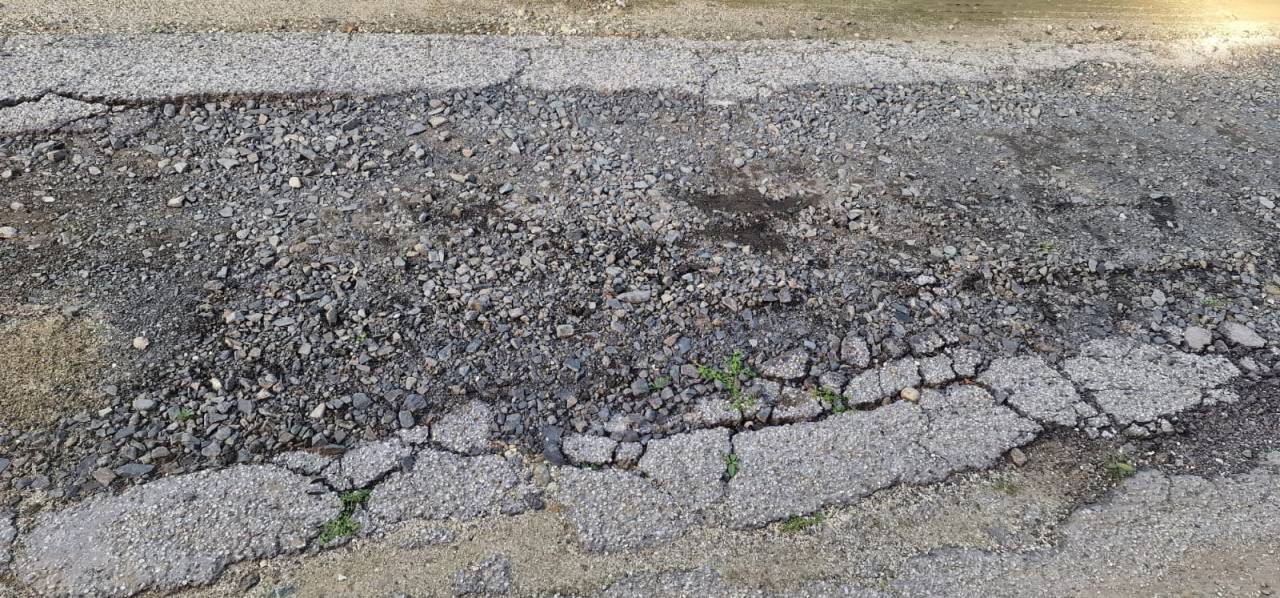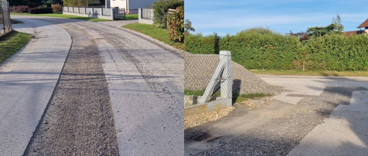 Izvajalec del je podjetje Teleg-m, kot je razvidno iz spodnje fotografije, pa je cesta v slabem stanju in morebiti celo nevarna za udeležence v prometu.