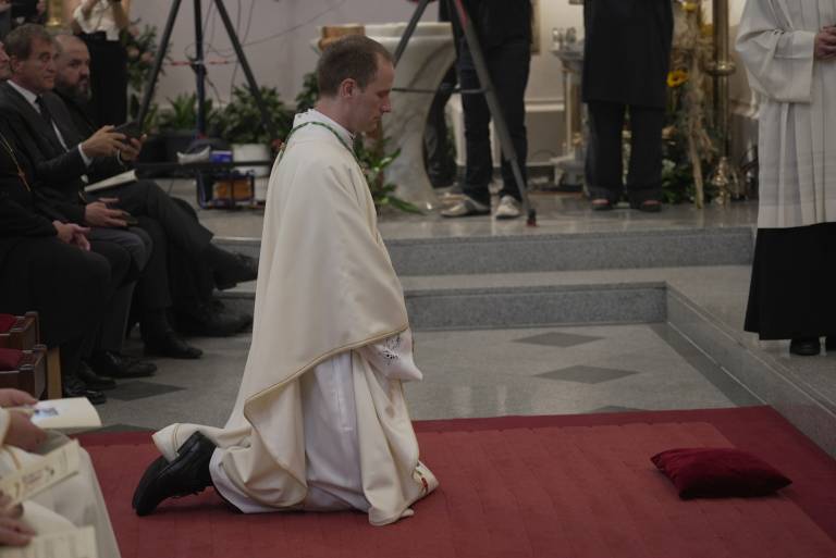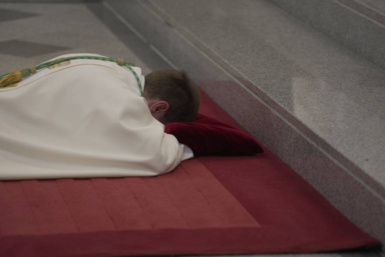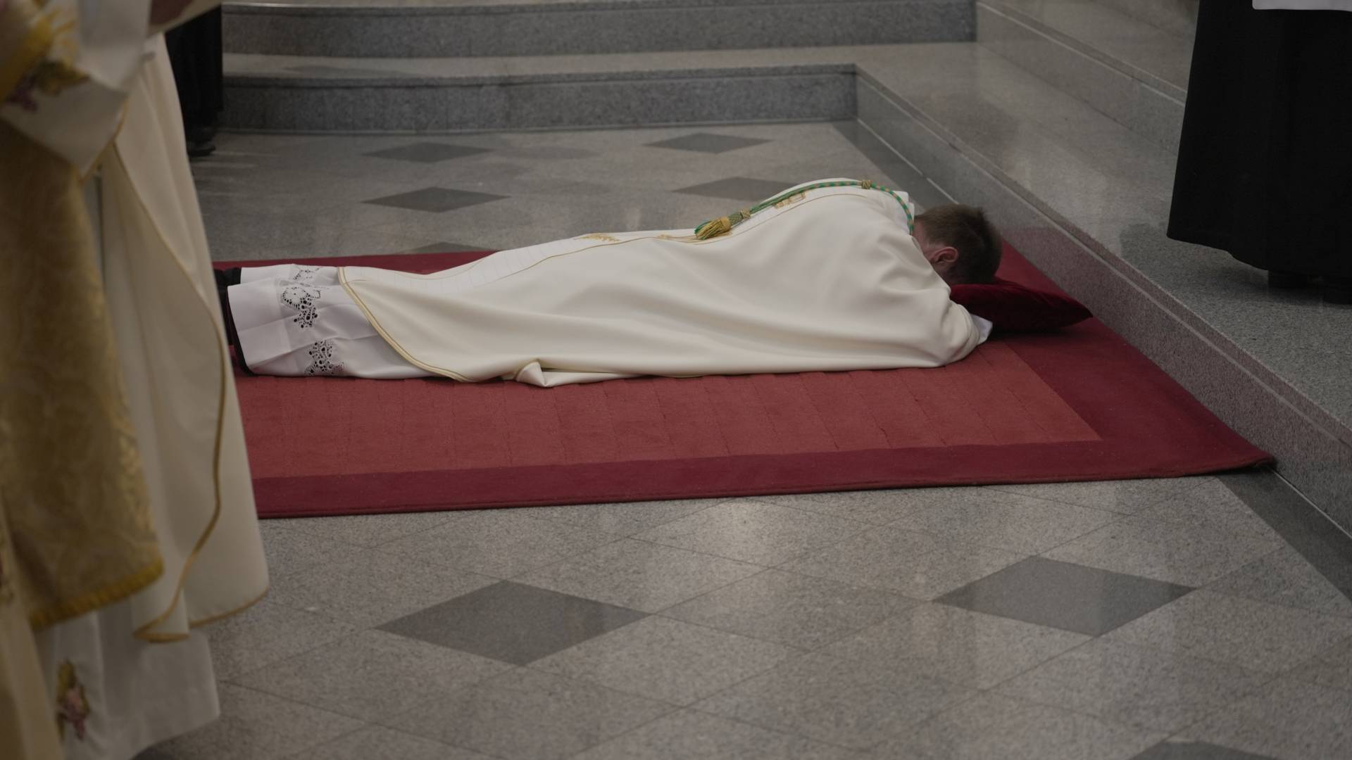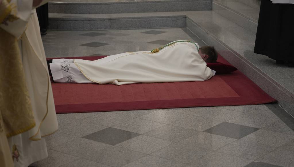 Najbolj ganljiv trenutek posvečenja je bil, ko je novi škof med molitvijo ležal na tleh pred oltarjem. To dejanje, ki ga imenujemo prostracija, ima globok duhovni pomen.