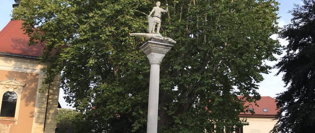 Na trgu pred cerkvijo stoji kip sv. Teodorja, ki so ga nazadnje obnovili leta 1993.