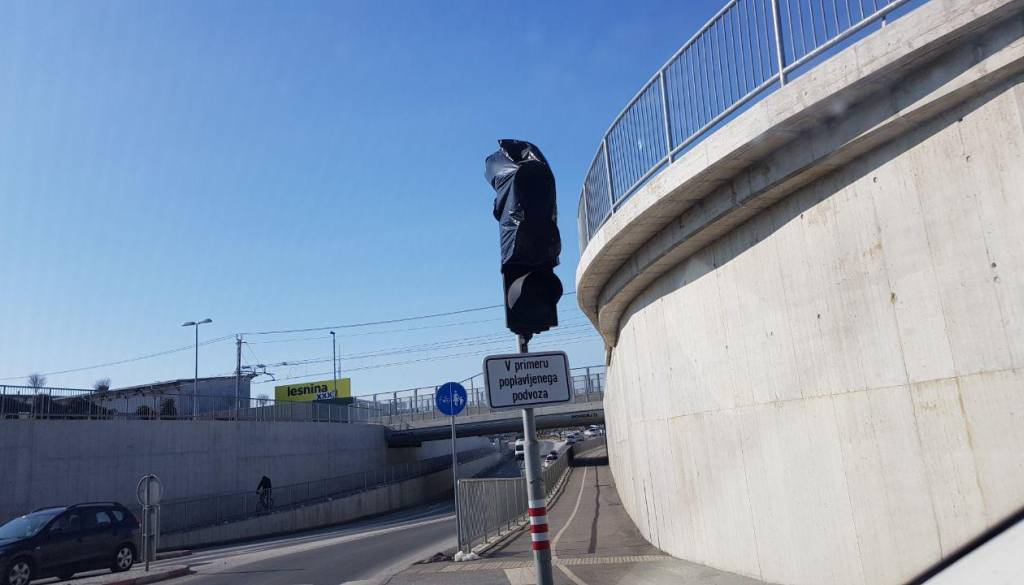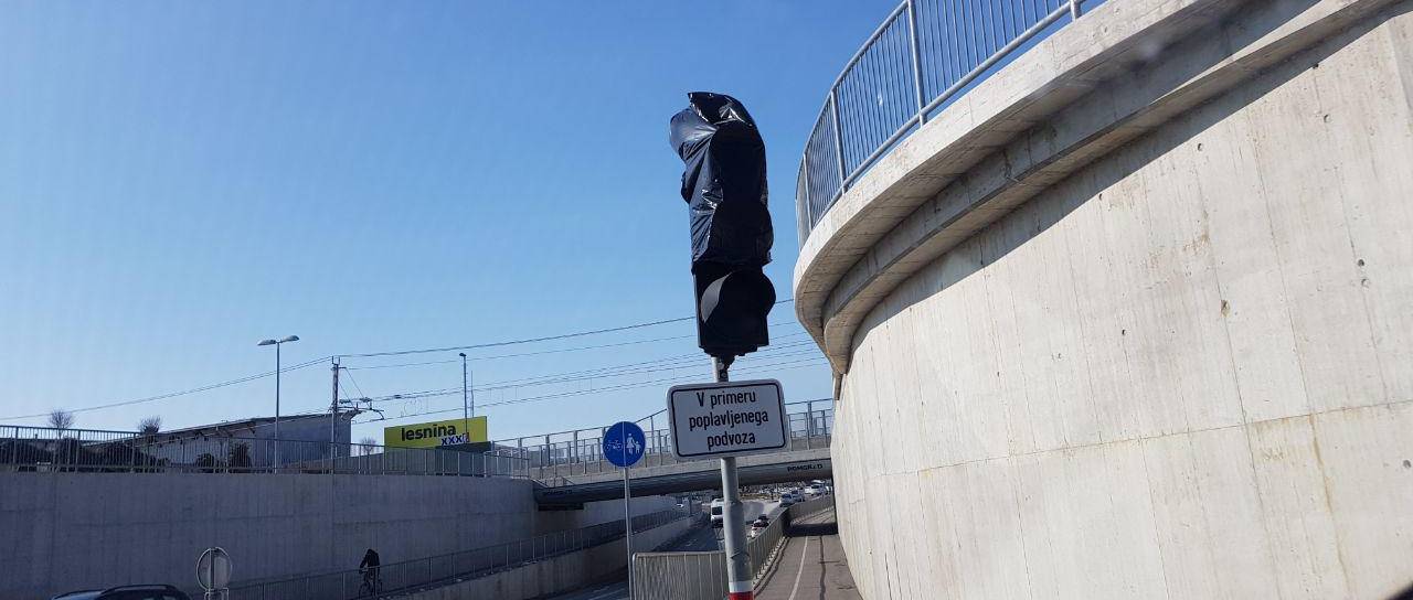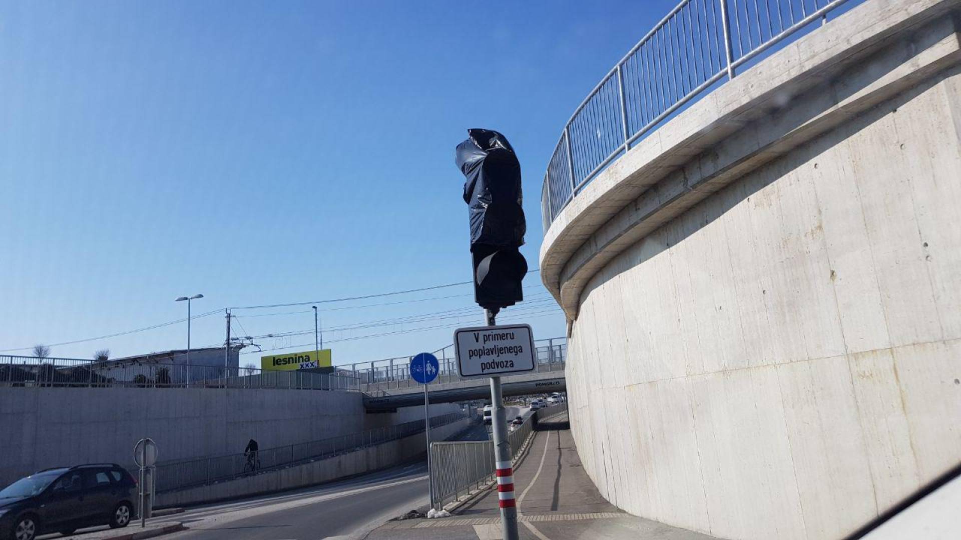 Kdor se je danes peljal mimo v krožišču Panonske in Industrijske ulice v Murski Soboti, je naletel na nenavaden prizor. Semafor pred podvozom je namreč pokrit s črno vrečko.