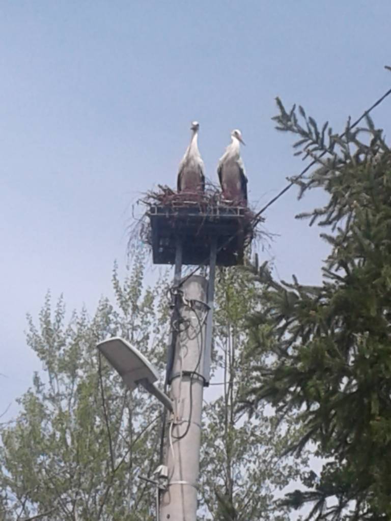 V sredini marca so gnezdo še uredili in namestili nekaj vejevja, da si bosta potem štrk in štorklja lažje spletla gnezdo, kjer bosta do jeseni živela in prebivala.