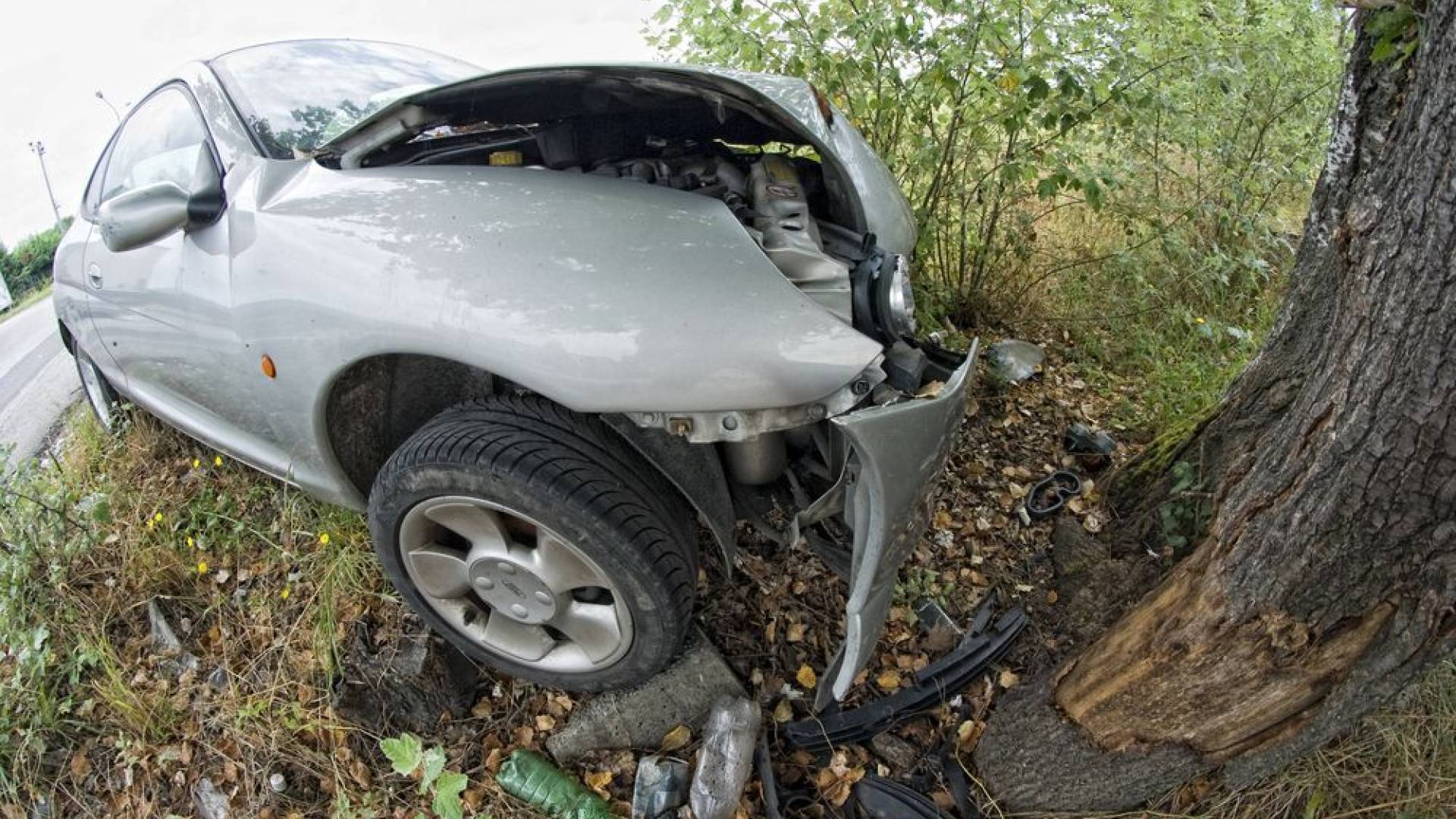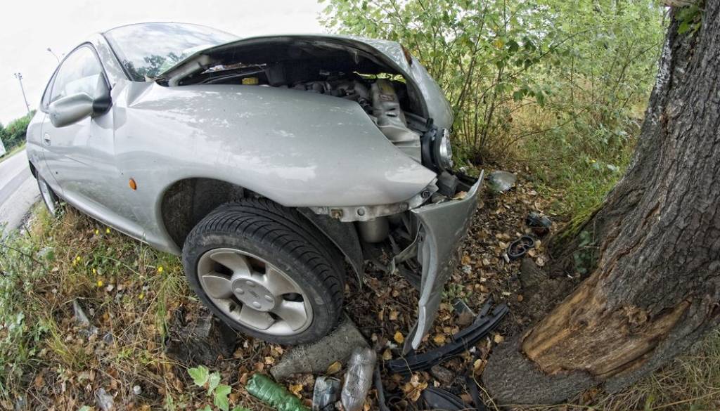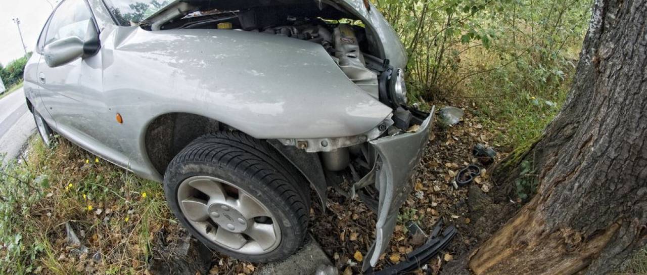 Voznica je zaradi vožnje preblizu roba vozišča trčila v drevo