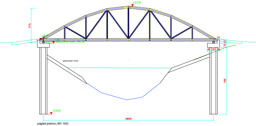 Stari most je bil jeklene izvedbe, vozišče pa je bilo zgrajeno iz lesa, pritrjenega na okrogle jeklene cevi. Ravno jekleni del je bil zaradi korozije poškodovan. Novi most je predviden kot jeklena konstrukcija na dveh mostni opornikih na robovih brežin, brez stebrov v strugi, ki bi ovirali pretok. Doslej se je namreč pogosto dogajalo, da so stebri ovirali pretok vej in ostalih naplavin, te pa so nato morali umikati z bagerjem. Korito pod mostom bo tlakovano s kamnom v betonu. Imel bo tudi poseben hodnik za pešce in kolesarje z ene strani.