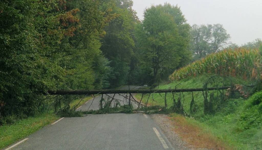 Zaradi podrtega drevesa je cesta med Prosečko vasjo in Mačkovci popolnoma zaprta.