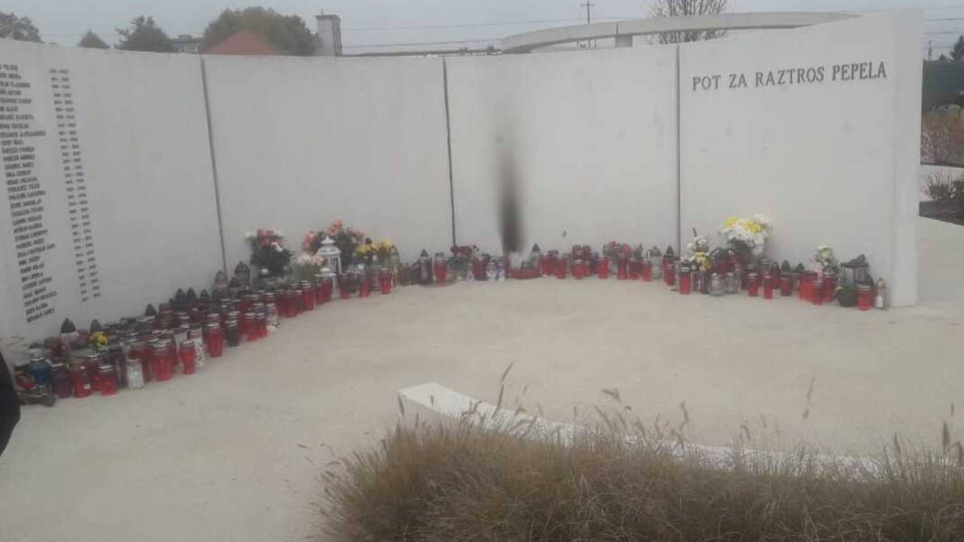 Na fotografiji, ki jo je objavila, je vidna črna sled, ki jo je za seboj pustila ena od sveč, postavljenih ob zidu, ki so jih tam pustili svojci ob nedavnem prazniku spomina na mrtve.
