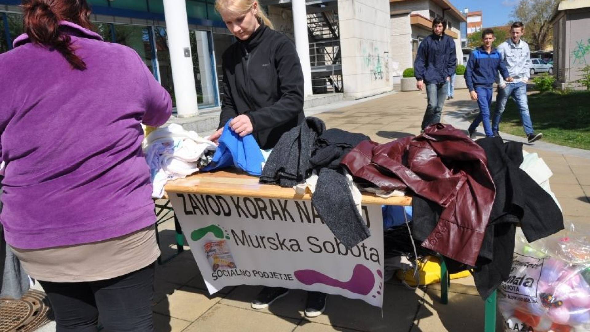 Danes je na malem trgu v Murski Soboti ponovno potekala dobrodelna prireditev, kjer so podarjali otroško opremo in oblačila.