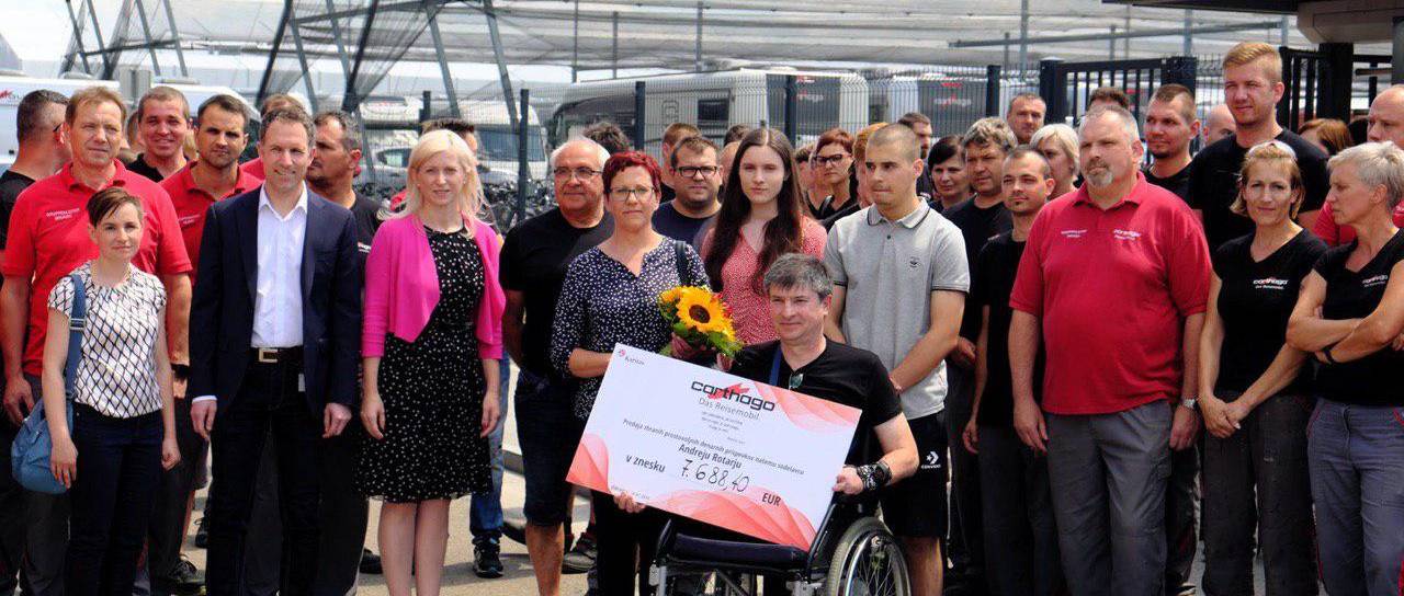 K sreči so na pomoč hitro priskočili dobri ljudje. S pomočjo prijateljev je Andrej zbral nekaj denarja za nujen nakup prilagodljivega avtomobila in uredil kolo. Organiziranih je bilo tudi kar nekaj dobrodelnih akcij, v katerih smo Pomurci zbirali denarna sredstva. Z lepo gesto pa so se zdaj izkazali še v podjetju Carthago.