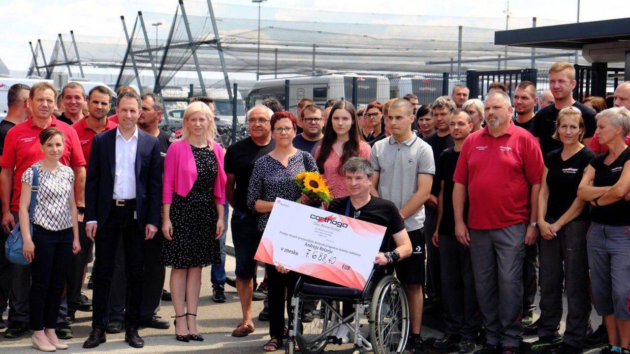 Andreju, ki je zbolel za redko boleznijo in izgubil obe nogi, so sodelavci vročili finančno pomoč.