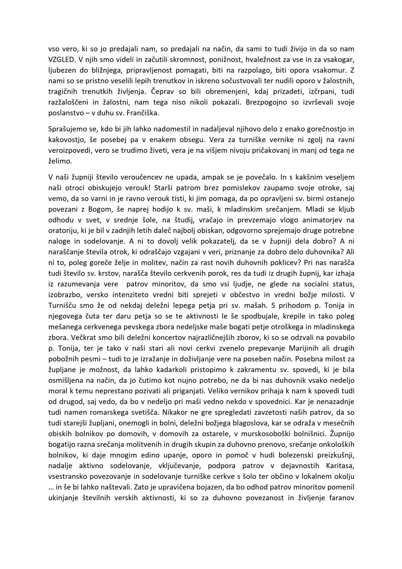 »Odhod patrov minoritov iz župnije Turnišče je zame in za mnoge zelo težek in boleč,« je nato še zapisal škof Peter Štumpf.