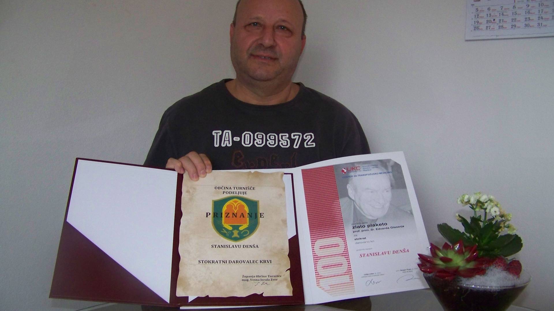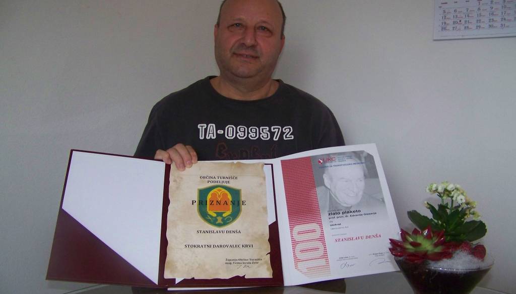 Med pomurskimi krvodajalci, ki so kri darovali že več kot 100- krat, je tudi 55- letni Stanislav Denša iz Turnišča, ki je ponesen, da je doslej svojo lastno kri daroval 104-krat.