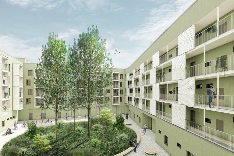 Zeleni dvor bo zelen predvsem zaradi energetske učinkovitosti in ozelenitve znotraj, zunaj in tudi na strehi stavbe – tam so predvidene površine za vrtnarjenje, kjer bodo stanovalci v visokih gredah lahko sredi mesta pridelali lastno zelenjavo ali sadje.