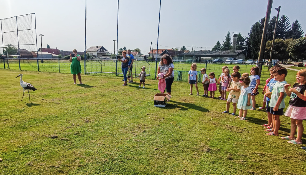 Iz Krajevne skupnosti Cven so včeraj sporočili, da si je mladič štorklje opomogel, zato so ga s pomočjo otrok iz vrtca izpustili na prosto.