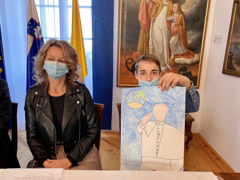 Papež se je otrokom zahvalil za poslana umetniška dela, ki so nastala v sklopu poletne otroške delavnice v župniji Sv. Petra pri Mariboru v Malečniku in jih opomnil pomembnosti medsebojnih odnosov in spoštovanja ter varovanja narave.