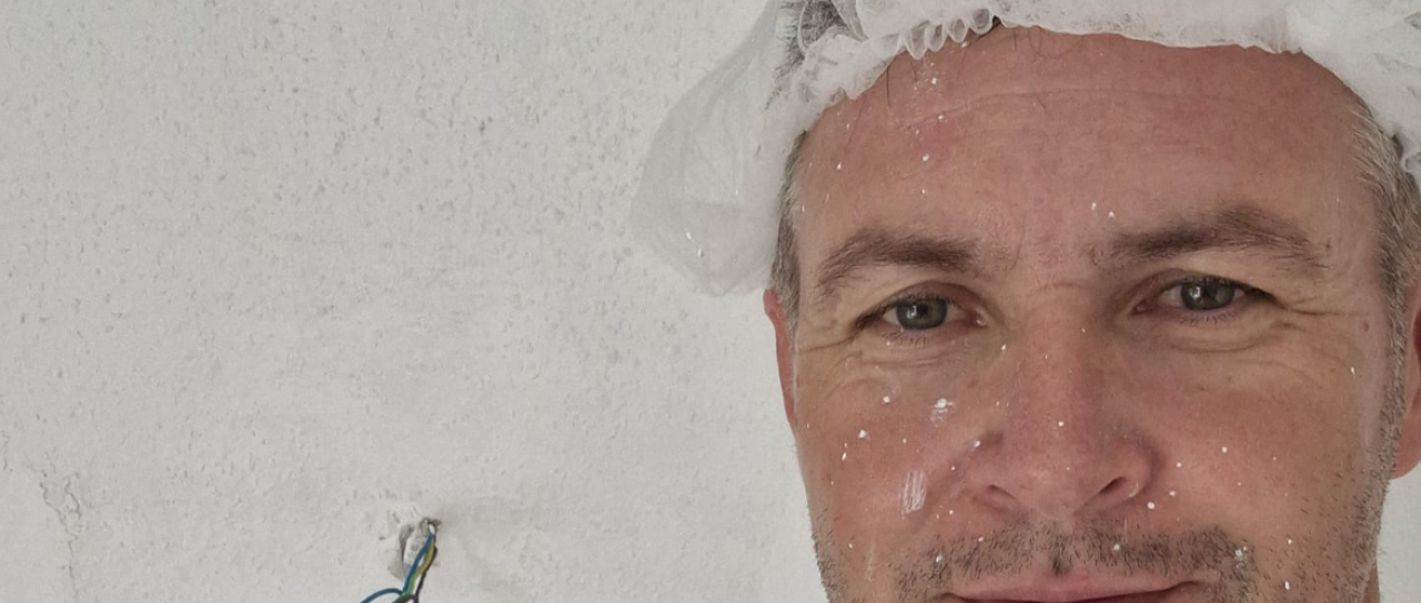 »Gre ... Prva soba je že bela,« je pripisal ob svojem selfiju s popackanim obrazom.