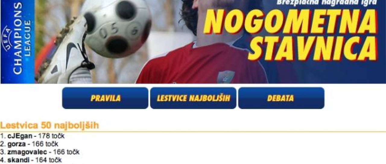 V času letošnje Lige prvakov je potekala brezplačna nagradna igra Sobotainfo nogometna stavnica, v kateri so uporabniki napovedovali pravilne tipe rezultatov.