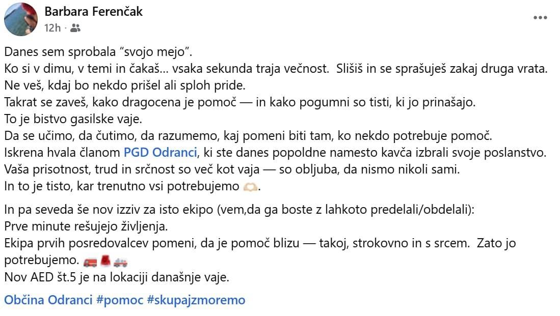 Gasilci so na družbenem omrežju Facebook sporočili, da je bila vaja izvedena na centru kulturne dediščine v Odrancih.