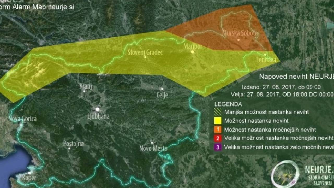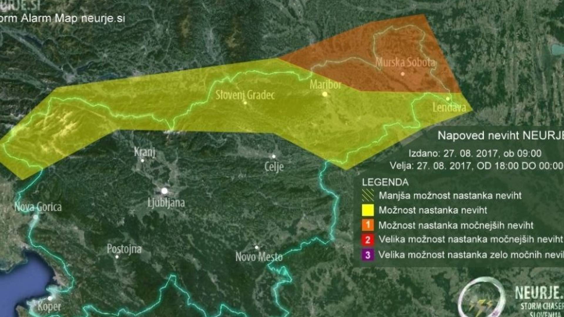 V Pomurju lahko nastane kakšna močnejša nevihta z močnejšimi sunki vetra, nalivom in točo, še opozarjajo na Neurje.si.