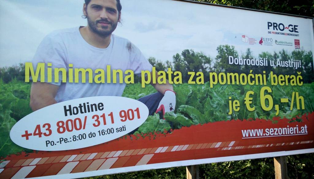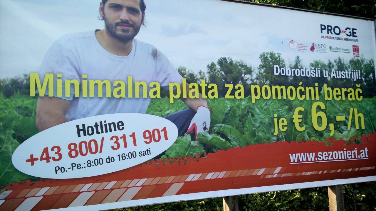 Z velikim obcestnim panojem Avstrijci ne iščejo pomočnikov pri beračenju, ampak delavce seznanjajo z njihovimi pravicami.