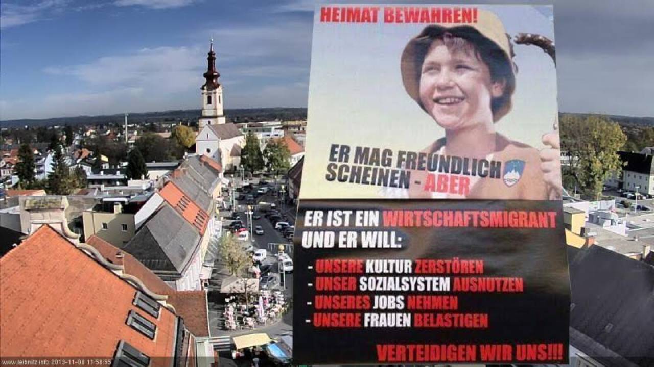 »V povezavi s posredovano fotografijo plakata, ki ga je, kot navajate, bralec Večera opazil na avstrijskem Štajerskem, sporočamo, da smo zelo presenečeni in da tovrstne akcije najodločneje obsojamo.«
