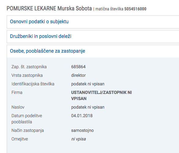 Iz omenjenega sporočila pa je tudi razvidno, da naj bi Pomurske lekarne od 4. januarja 2018, ko je sodišče iz sodnega registra izbrisalo zakonitega zastopnika, te mimo javnega razpisa in brez zakonitega vodstva nabavile že za več kot 3.117.228,81 evrov zdravil.