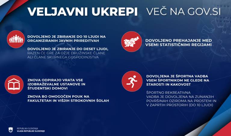 • Dovoljeno je zbiranje do deset ljudi na organiziranih javnih prireditvah in javnih shodih.