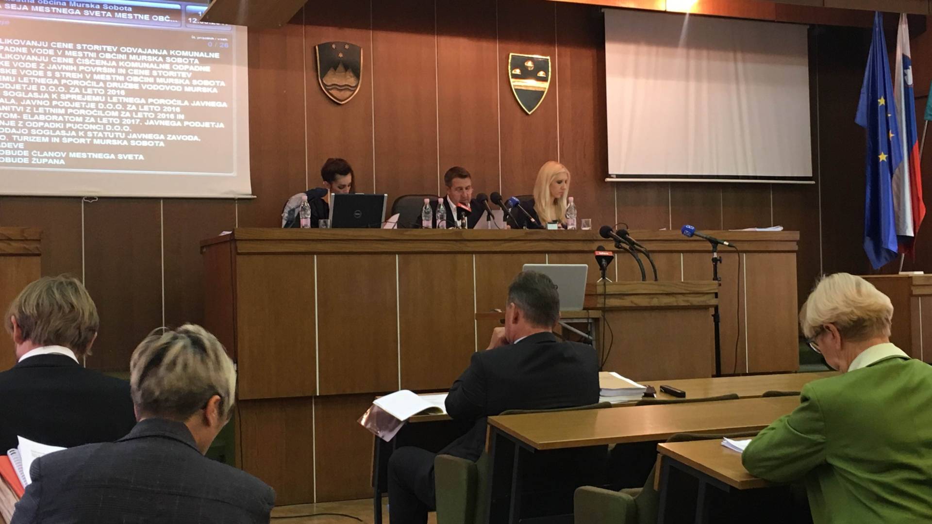 "Svetniki so tudi potrdili elaborat o oblikovanju cene storitev odvajanja komunalne in padavinske odpadne vode ter elaborat o oblikovanju cene čiščenja komunalne odpadne vode in padavinske vode z javnih površin in cene storitev čiščenja padavinske vode s streh v Mestni občini Murska Sobota".