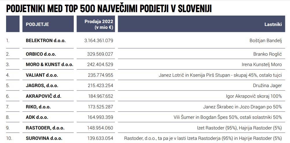 Po prodaji je peto največje in tretje najboljše po sinonimu za uspešnost poslovanja v osnovni dejavnosti, med tistimi velikimi družbami, ki so v lasti podjetnic oziroma podjetnikov.