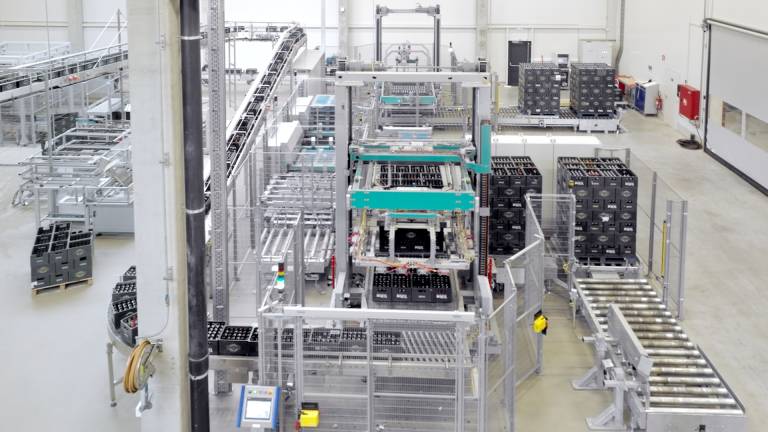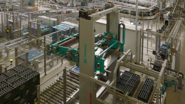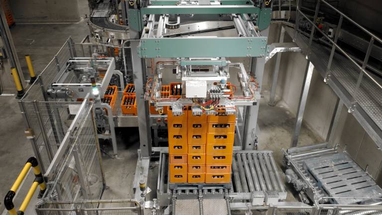 Transpak je tako v Orval vključen s paletizerjem in depaletizerjem, a to še ni vse. Suhadolnik: »Tudi kompletni logistični del smo izdelali mi; se pravi vse paletne proge v skladišču in dvigalo.«