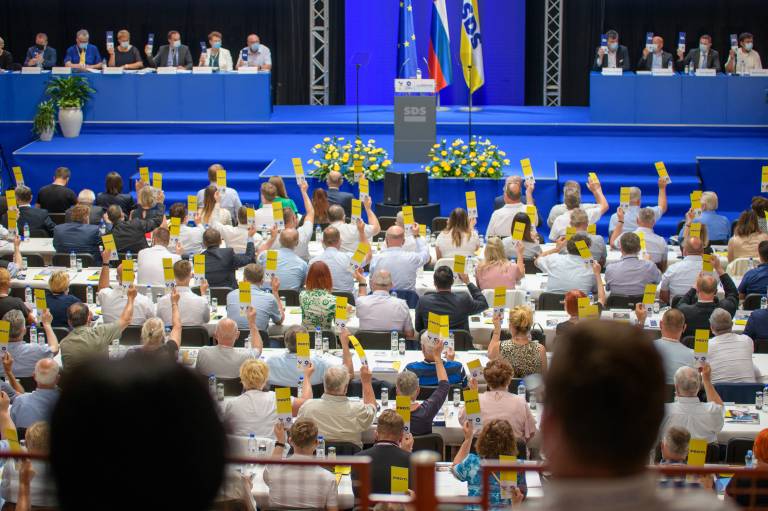 Slovenska demokratska stranka se je v soboto, 19. junija, zbrala na svojem 12. kongresu, na katerem bodo delegati sprejeli pomembne programske resolucije in izvolili novo vodstvo. Trenutni predsednik Janez Janša, ki stranko vodi že od leta 1993, je ponovno brez protikandidata.