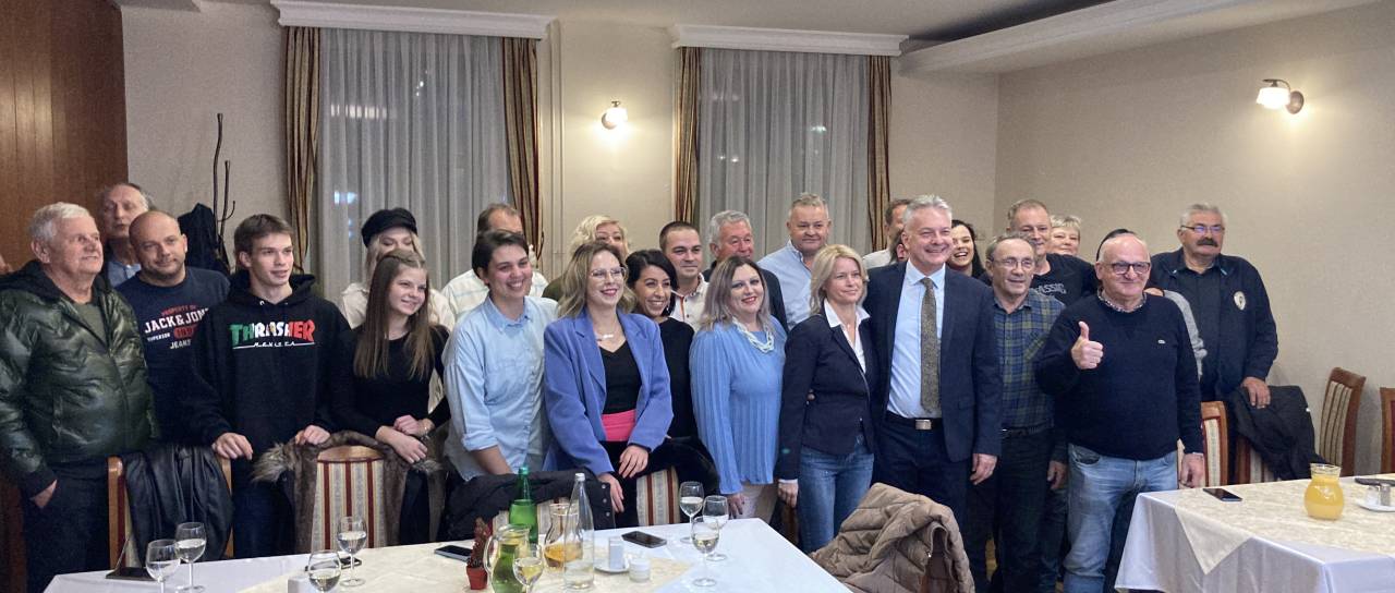 V štabu Andreja Mešiča, kandidata Slovenske demokratske stranke, je tako kot v prvem krogu lokalnih volitev, že veselo.