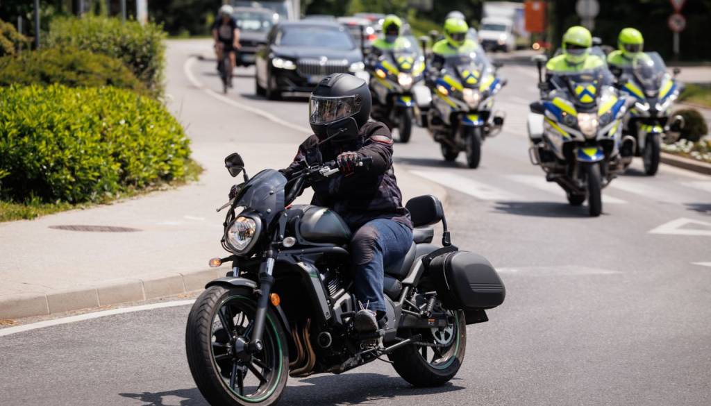 V družbi inštruktorjev in policistke ter policistov motoristov se je nato odpravila na relacijsko vožnjo med Domžalami in Bledom.