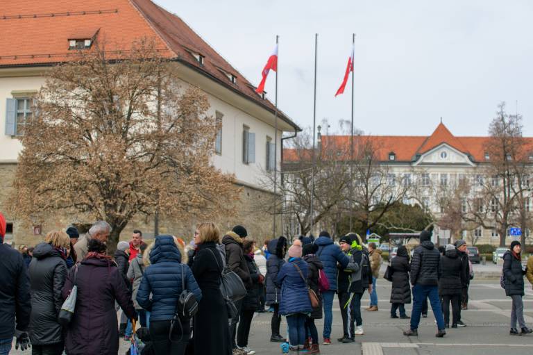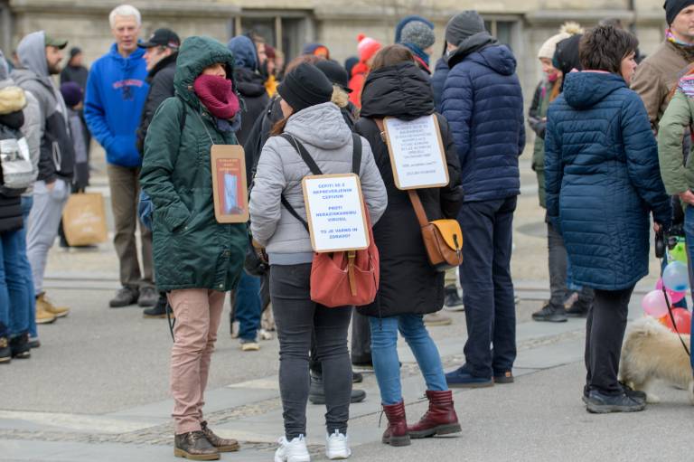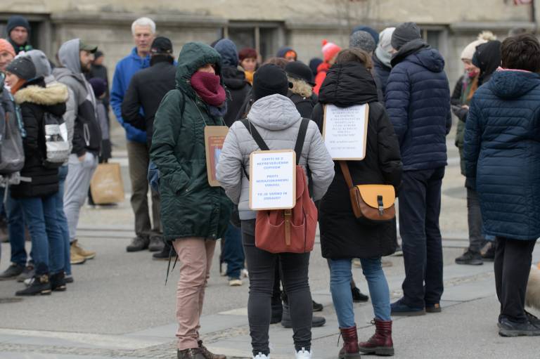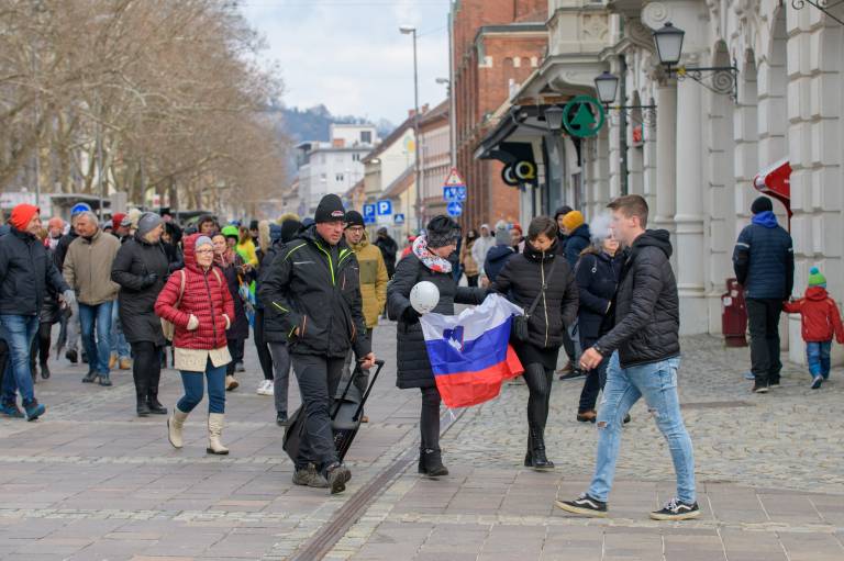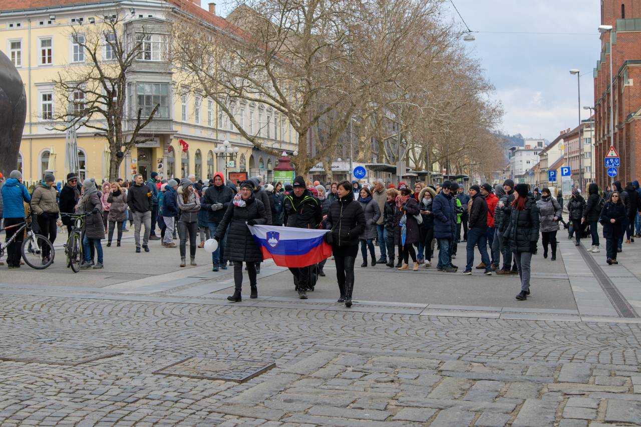 V središču Maribora se je danes na mirnih protestih zbralo nekaj sto ljudi, ki so izražali nasprotovanje ukrepom za omejitev širjenja novega koronavirusa in cepljenju. Shod je spremljala policija, ki pa ni posredovala.