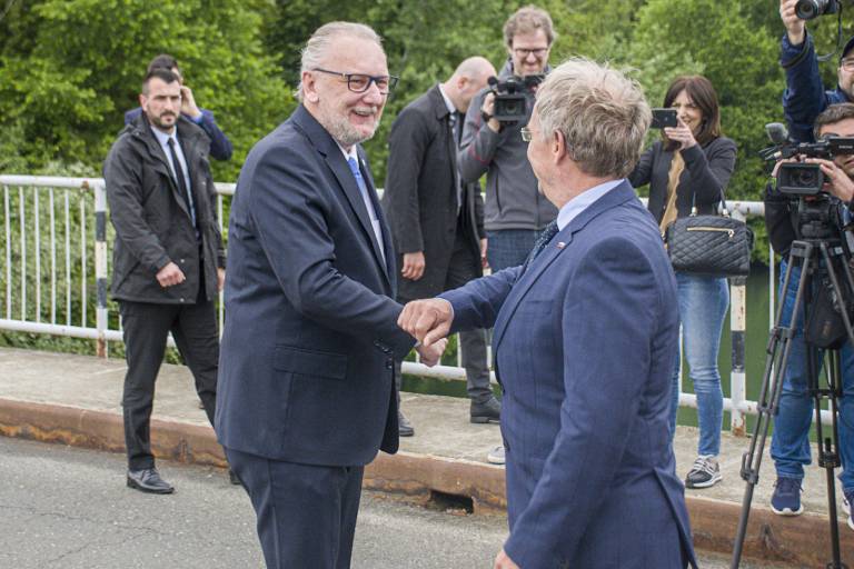 Ministra sta se ob 9.30 srečala na prenovljenem mednarodnem mejnem prehodu Ormož, nato pa pogovore nadaljevala v Gradu Ormož.