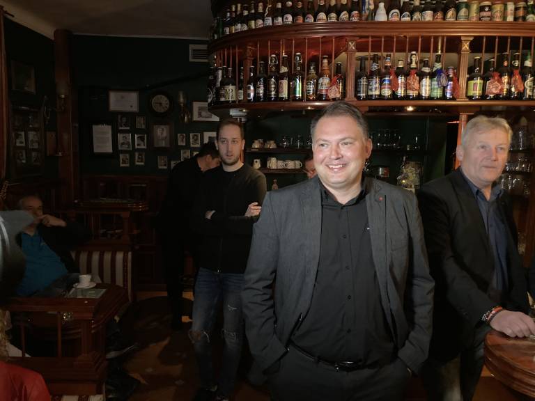 Kot je razvidno iz slik, je v volilnem štabu Damjana Anželja, kandidata Socialnih demokratov, že zelo veselo.
