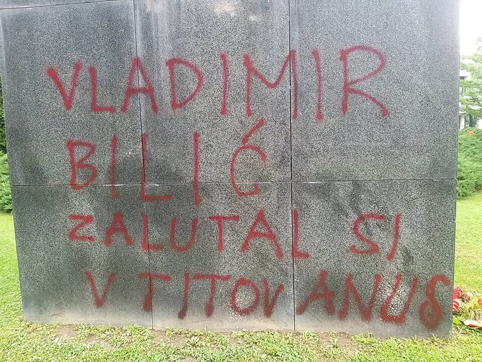 Neznanec ali več njih je na spomeniku Josipa Broza Tita z rdečo barvo zapisal ime oddaje Faktor in odvetnika Vladimirja Bilića, ki je bil sinoči gost omenjene oddaje na TV3, v kateri je bilo govora o sovražnem govoru in grožnjah s smrtjo.