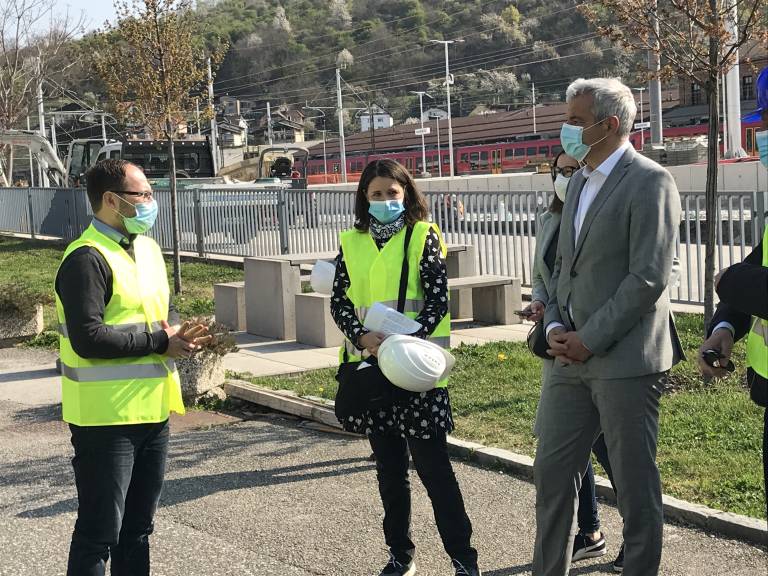 Minister za infrastrukturo Jernej Vrtovec je na terenskem obisku infrastrukturnih projektov v Mariboru in Laškem. Dopoldne si je ogledal gradbišče nadgradnje železniške postaje Maribor.