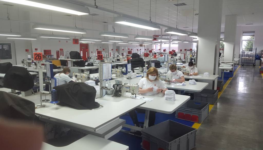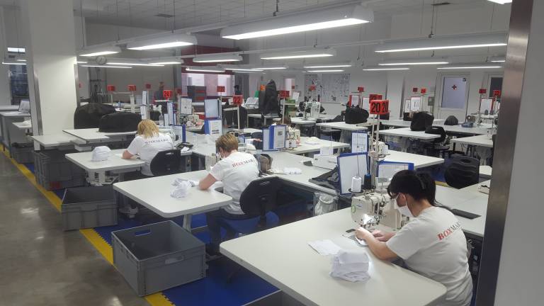 V Boxmark Leather je proizvodnja v celoti stekla danes. Tedensko bodo izdelali predvidoma okoli 40.000 do 45.000 zaščitnih mask oziroma okoli 5000 do 8000 na dan.