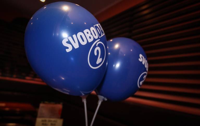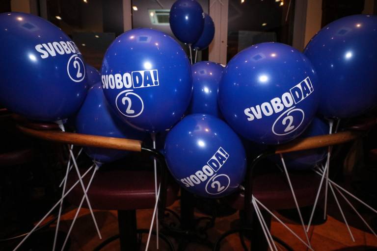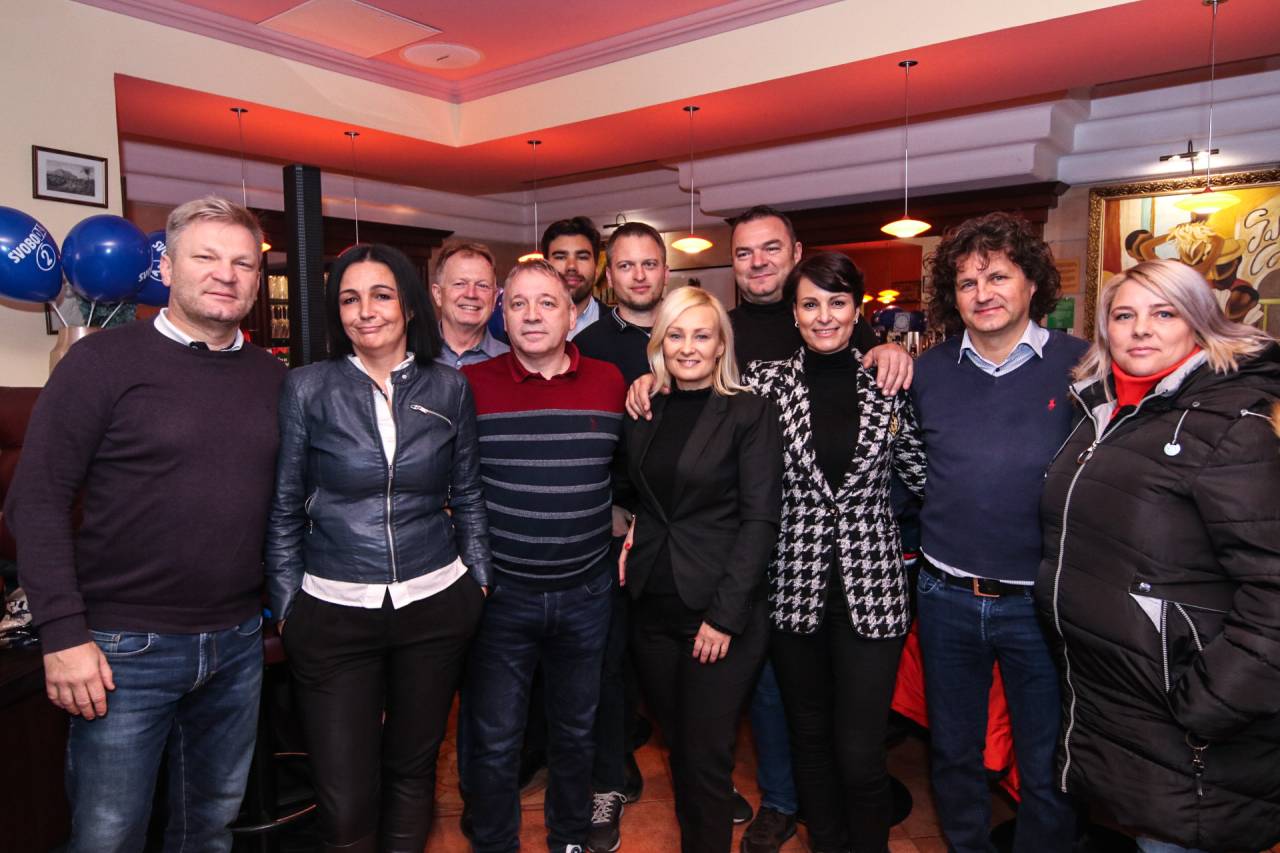 Kot je razvidno iz fotografij, je v volilnem štabu Mitje Horvata, kandidata Gibanja Svoboda, že zelo veselo.