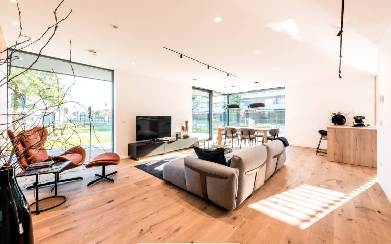 Ob primerni osvetlitvi na bivalno ugodje uporabnikov pomembno vpliva kakovosten in svež zrak, ki ga zagotavlja prezračevalni sistem, ki vsaki dve uri izmenja celotni volumen zraka. Pri tem pa omogoča, da s pomočjo filtrov zadrži primesi cvetnega prahu ali trdih delcev. Za dodatno bivalno ugodje uporabnikov skrbi toplotna črpalka s talnim ogrevanjem, v poletnih in zimskih mesecih pa vgrajen sistem stropnega hlajenja in ogrevanja.