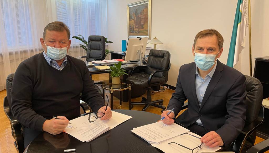 Župan Mestne občine Murska Sobota Aleksander Jevšek in član uprave podjetja Pomgrad Boris Sapač sta danes podpisala gradbeno pogodbo za obnovo lokalne ceste Nemčavci- Markišavci-Polana.