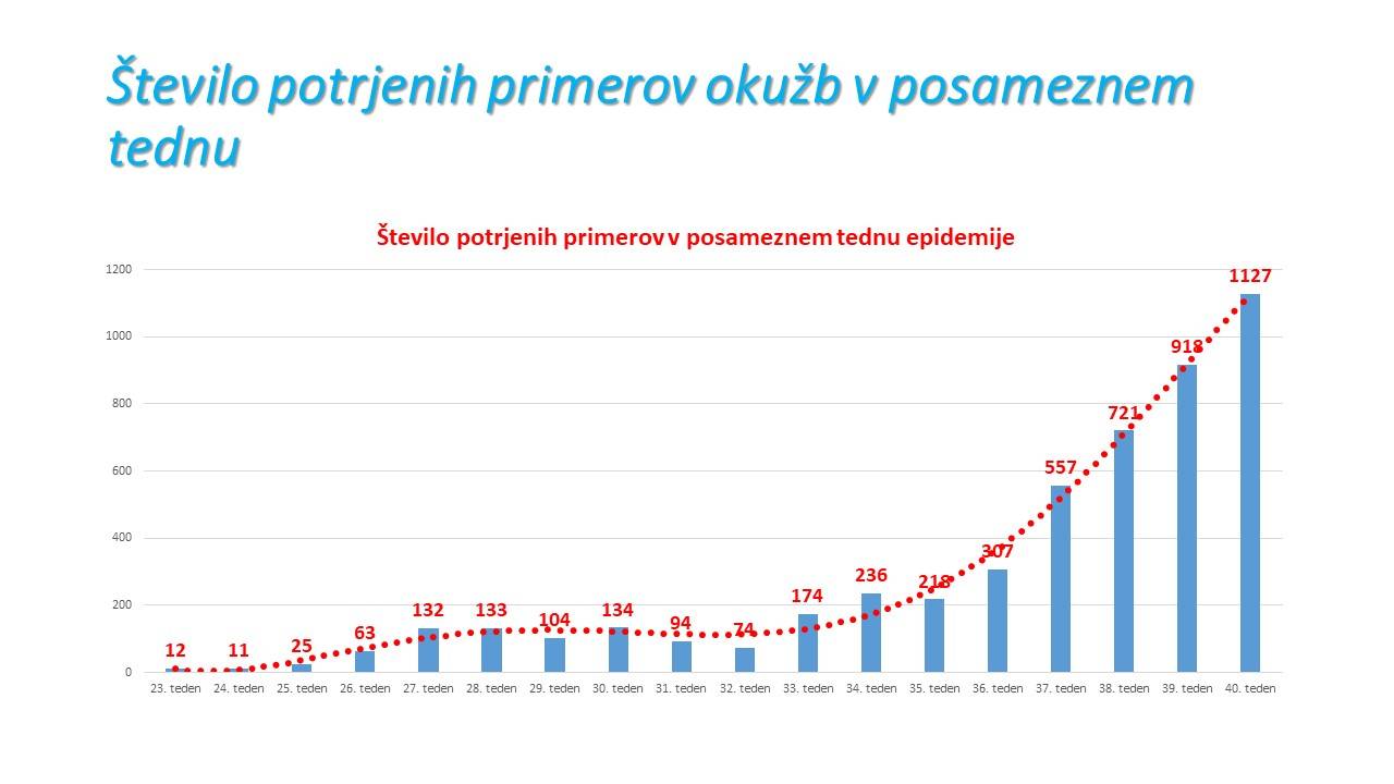 14-dnevna incidenca je poskočila na 116,02. Največji delež primerov imamo na Koroškem in Zasavju.