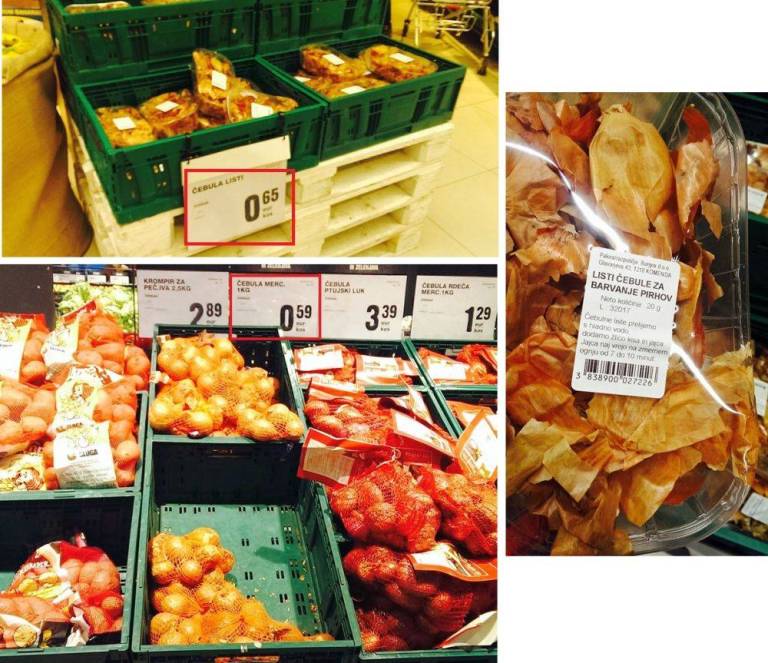 Na Zvezi potrošnikov Slovenije (ZPS) so v eni izmed trgovin opazili, da prodajajo 20 gramov čebulnih olupkov po 65 centov, kilogram čebule pa po 59 centov.