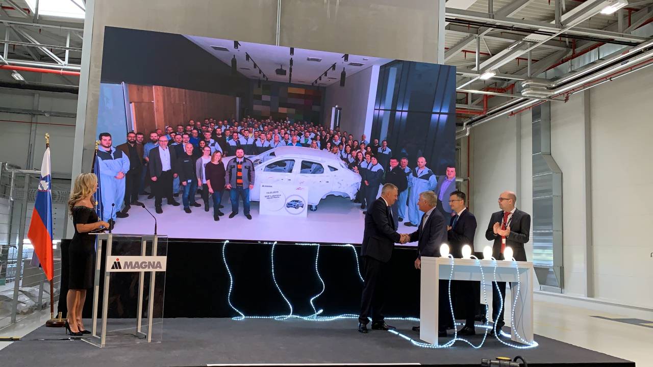 Na uradnem odprtju obrata je predsednik vlade Marjan Šarec, kot slavnostni govornik na slovesnosti, kanadsko-avstrijskemu avtomobilskemu gigantu v Sloveniji zaželel vse dobro: »Zagotovo je Slovenija dežela, ki je tudi naklonjena tujim investicijam in čeprav je vmes kdaj tudi kaj težav, se zadeve na koncu tudi izpeljejo.«