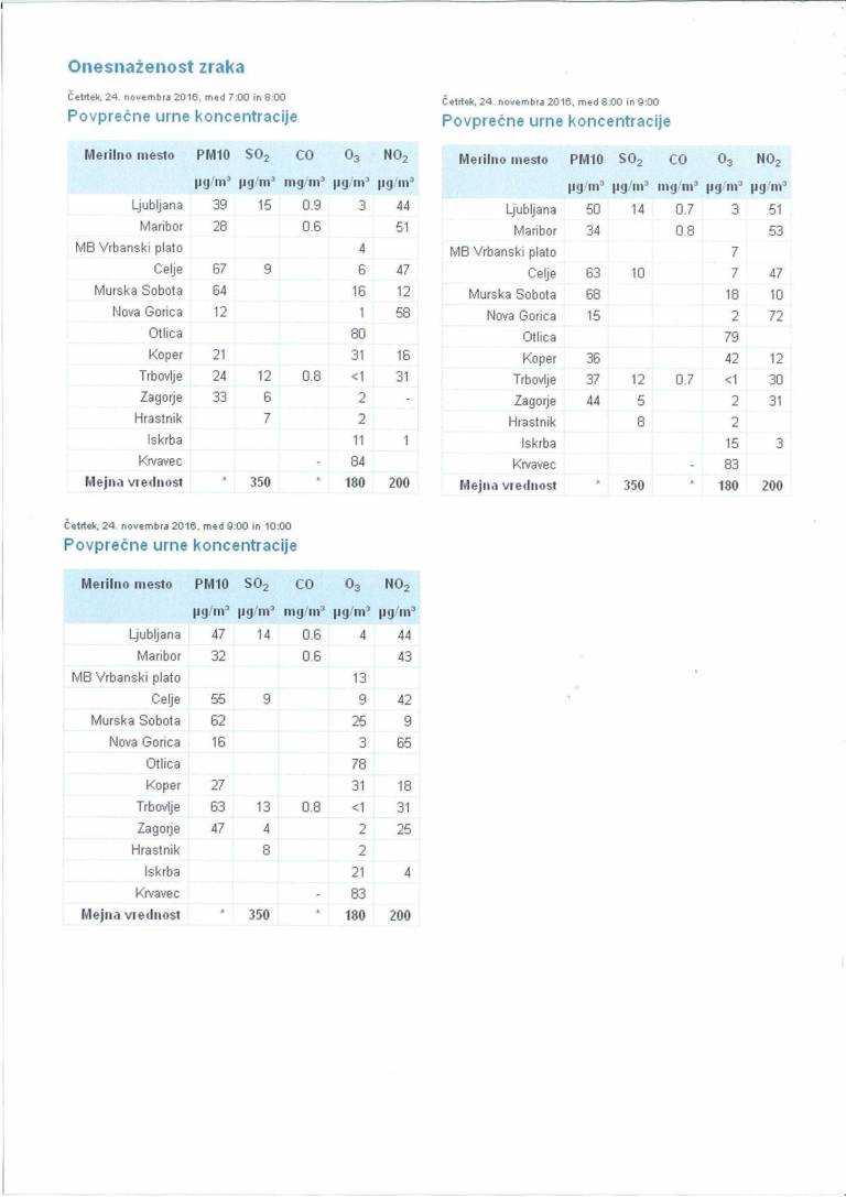 V Sloveniji imamo kar sedem območij – Maribor, Celje, Zasavje, Kranj, Ljubljana in Novo mesto in Mursko Soboto –, kjer izmerijo na merilnih mestih Agencije RS za okolje več kot 35 preseganj na leto. Večino dnevnih preseganj dovoljenih vrednosti prašnih delcev v zraku ARSO izmeri v jesensko-zimskih mesecih.