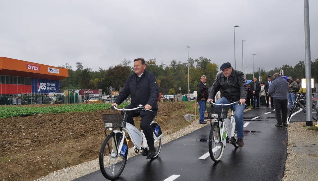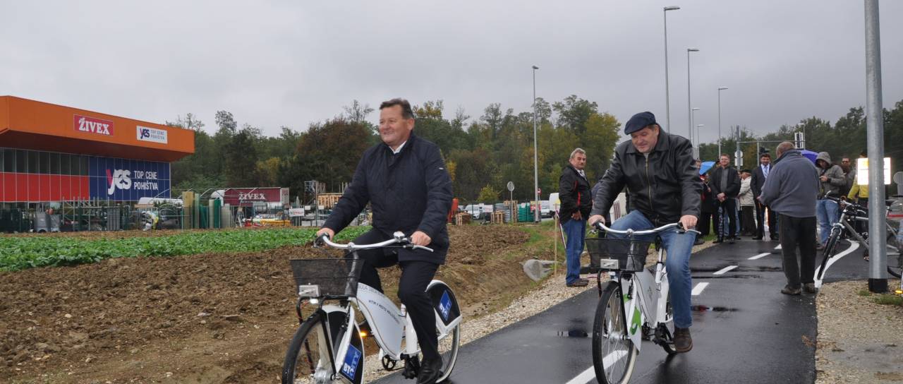 Po prerezu traka sta se oba predstavnika zapeljala s kolesi po novi kolesarski stezi.