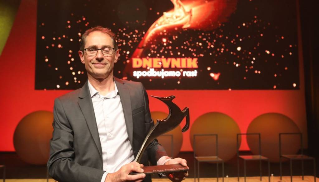 Predsednik vlade Marjan Šarec je včeraj, po tradicionalnem izboru družbe Dnevnik, podjetju Virs iz Lendave predal nagrado Zlata Gazela 2019.