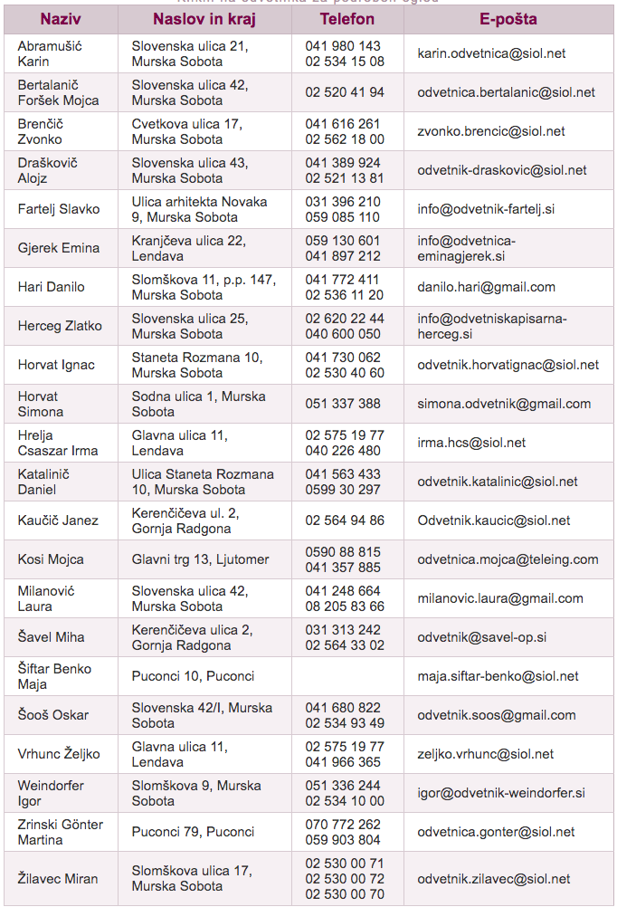 Brezplačno pravno pomoč bo nudilo tudi dvaindvajset odvetnikov iz Pomurja, ki si jih lahko ogledate na spodnjem seznamu.