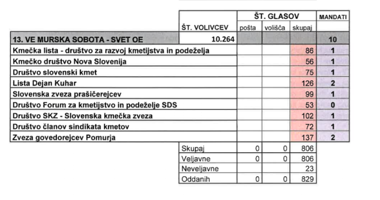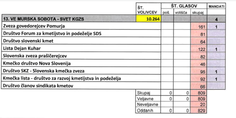 Iz skupine fizičnih oseb se je za izvolitev v najvišji organ krovne organizacije kmetov v soboški volilni enoti potegovalo devet list, kot kažejo neuradni rezultati, pa je bilo oddanih 829 glasov, od tega jih je bilo veljavnih 809.