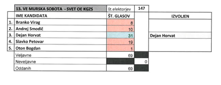 Kot so sporočili iz KGZS, je volilna komisija preštela vse glasovnice, ki so bili oddane 4. oktobra, in jim dodala rezultate predčasnega glasovanja, ki je potekalo 30. septembra skupaj z volitvami pravnih oseb.